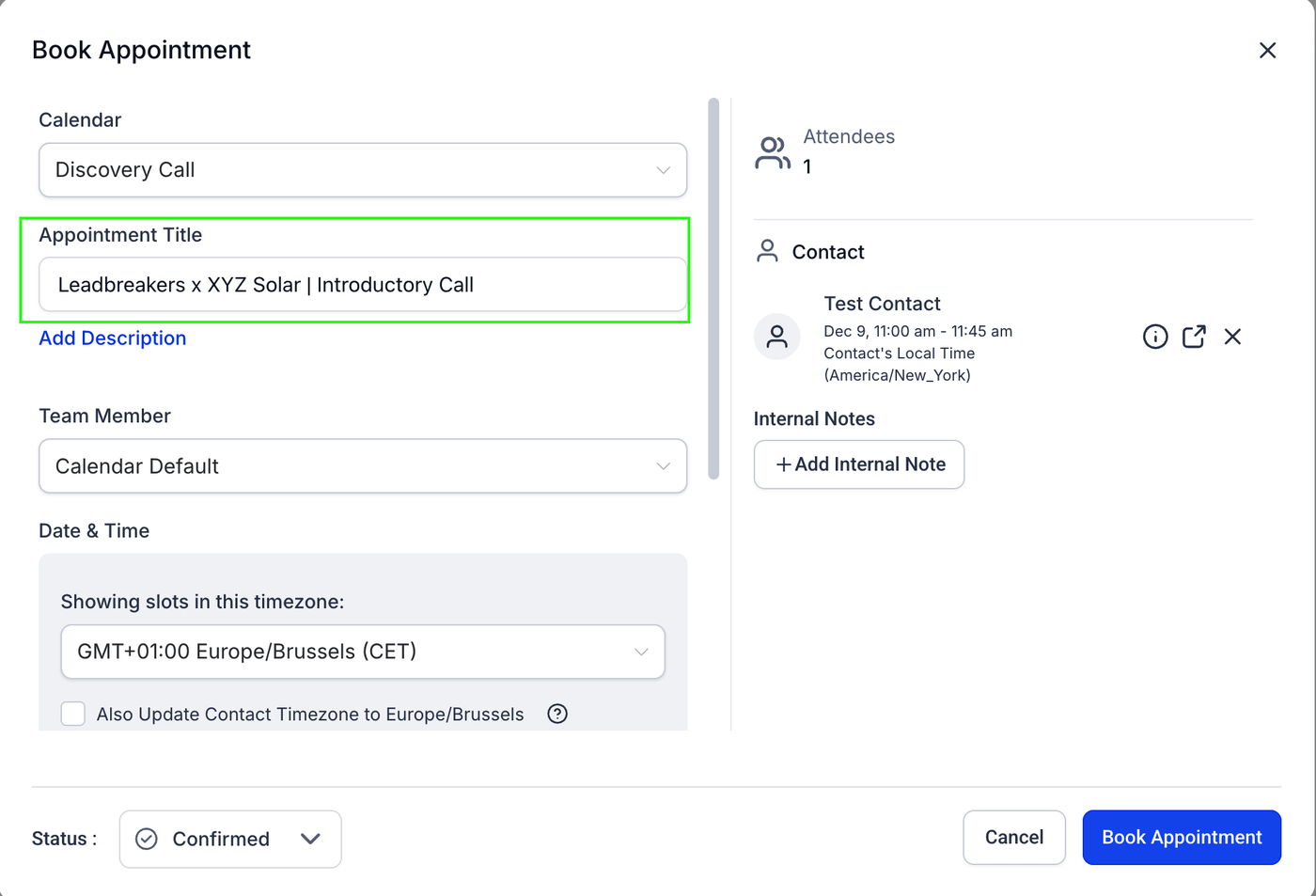 Example, lets say you booked a successful appointment with XYZ Solar. Then it would look like this in GHL.